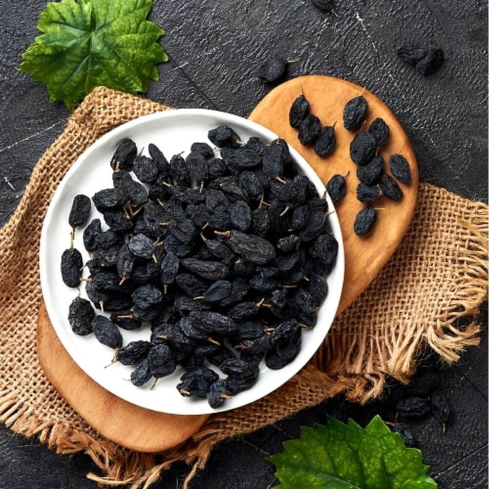 Black Raisins are naturally dried grapes cherished for their deep color, sweet taste, and soft chewy